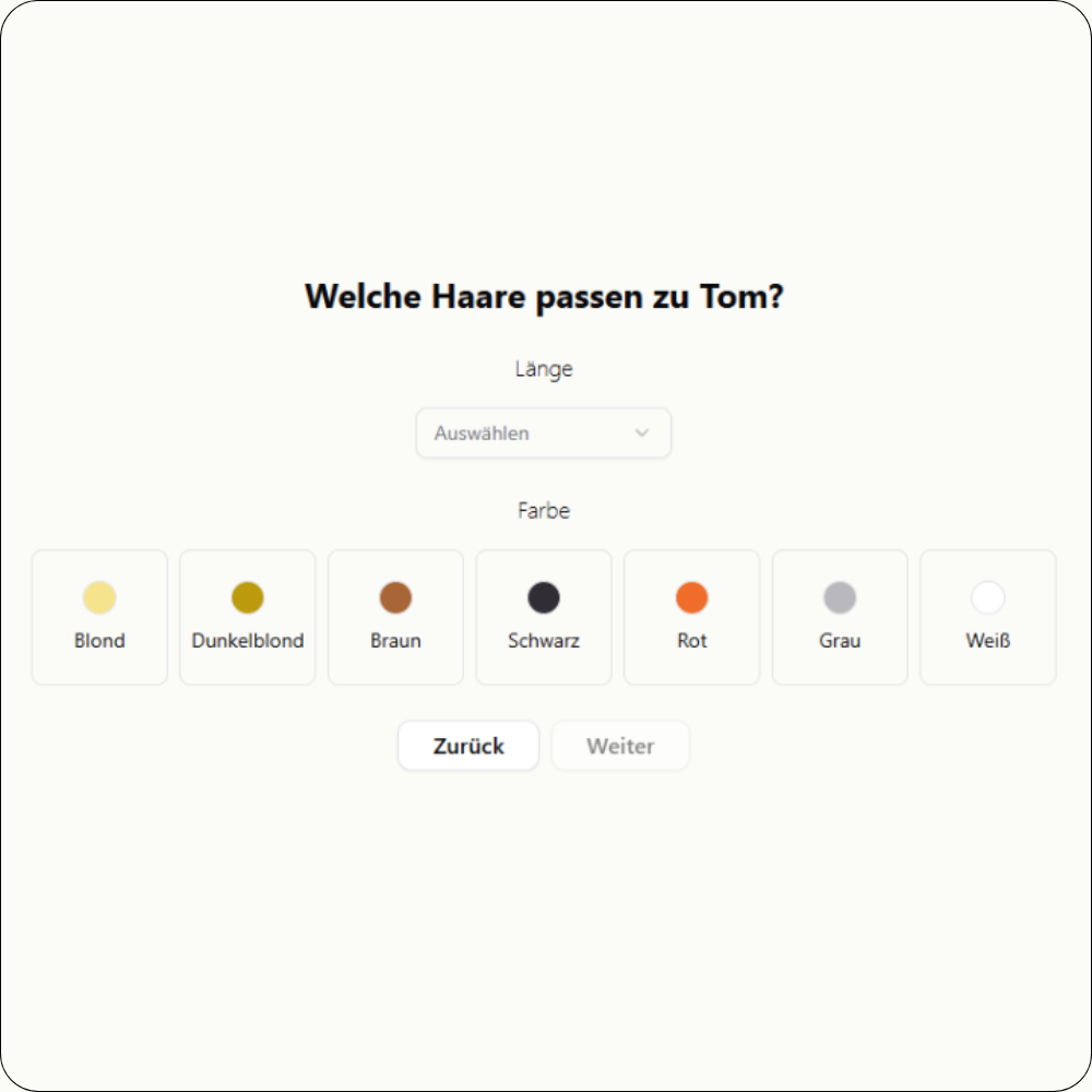 Name rein, Haarfarbe wählen, vielleicht noch das Geschlecht.